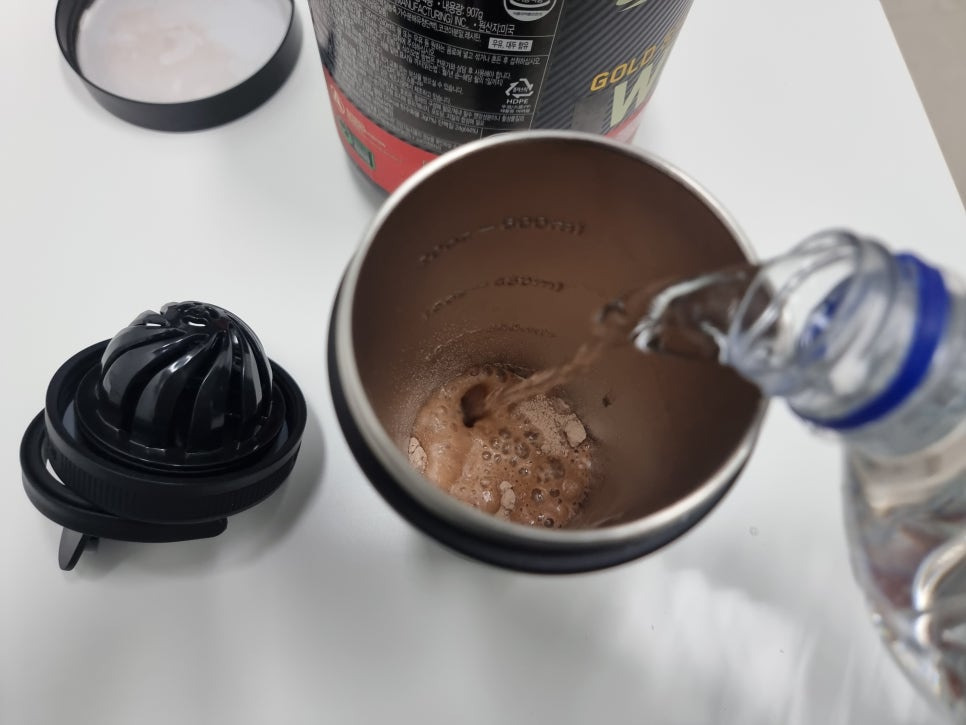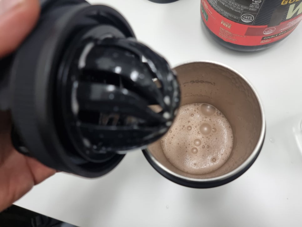 가루가 뭉치지 않고 고르게 섞이기 때문에 단백질 쉐이크를 더욱 부드럽게 마실 수 있다 있다.